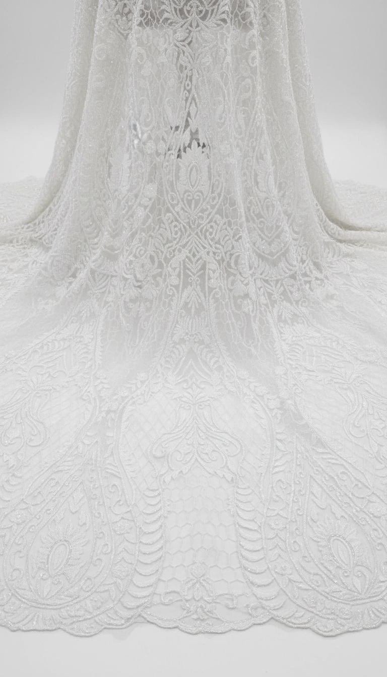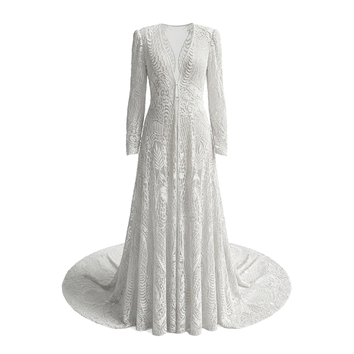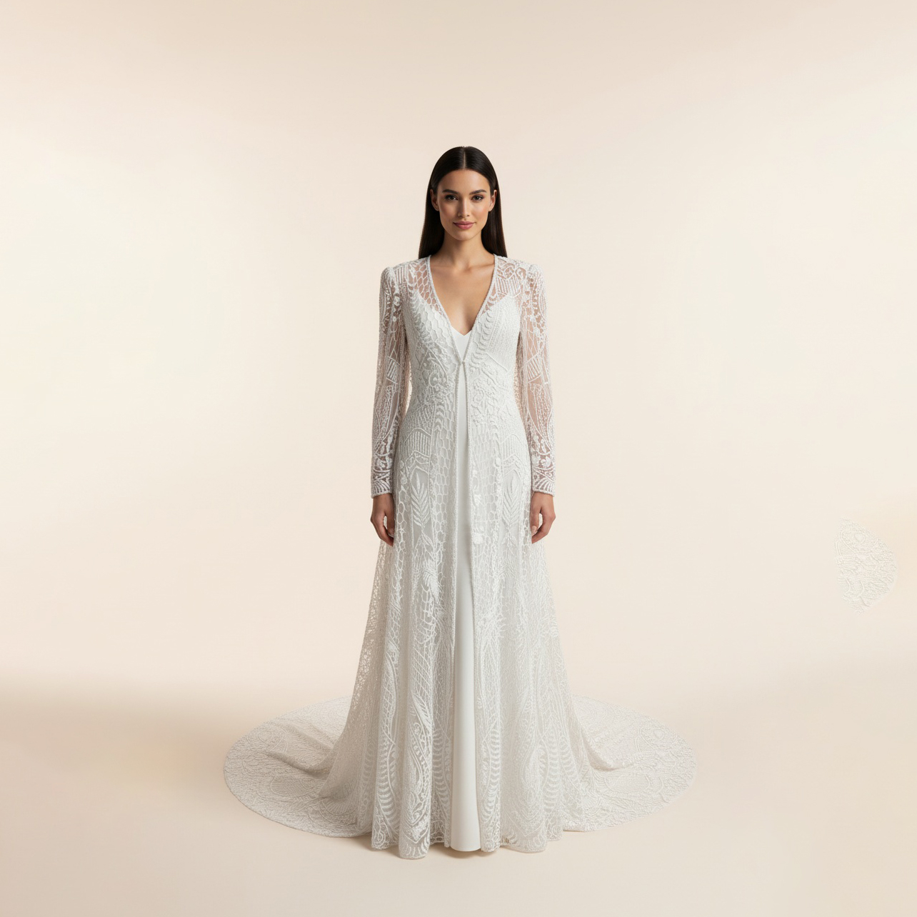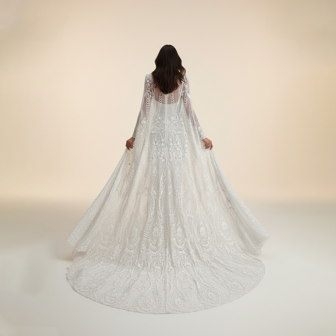 Capa larga de novia con bordado de pedreria.